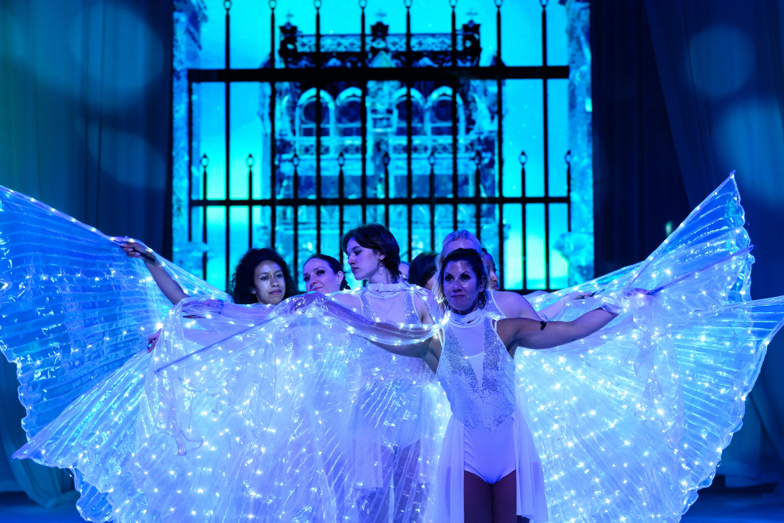 Onze lichtontwerper sprak uitgebreid met de regisseur om de juiste sfeer te bepalen, waarna we alle lichtstanden hebben ontworpen en gekoppeld aan de audiotracks. Sommige cues lopen volledig synchroon mee; andere worden handmatig geactiveerd tijdens de show. Zo ontstaat er een dynamische voorstelling waarin techniek en storytelling naadloos samensmelten.
